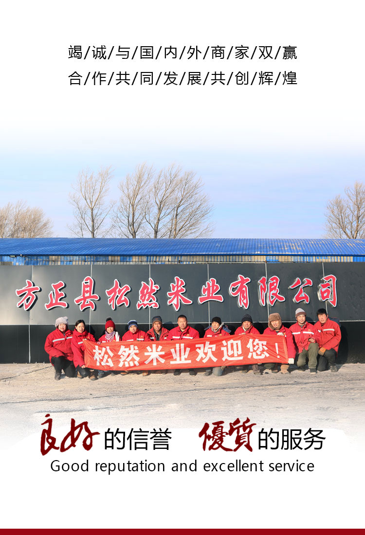 方正縣松然米業(yè)有限公司系一家專業(yè)從事大米加工的民營(yíng)企業(yè),公司座落在富有“富硒大米之鄉(xiāng)”的方正縣得莫利鎮(zhèn)吉興村 。無(wú)重工業(yè),稻田均由水庫(kù)灌溉,有著特殊的農(nóng)業(yè)自然資源。公司始建于2009年,占地面積10000平方米,糧食倉(cāng)儲(chǔ)能力在2萬(wàn)噸。松然米業(yè)從無(wú)到有,由小變大,始終堅(jiān)持以科技為依托,建制科學(xué)合理,安全生產(chǎn)運(yùn)作齊全,專業(yè)化程度高,在激烈的市場(chǎng)競(jìng)爭(zhēng)中保持著增長(zhǎng)勢(shì)頭,銷售額逐年增加。及時(shí)、準(zhǔn)確、有效的為客戶服務(wù)提供了保證。成立以來(lái),公司堅(jiān)持以“鞏固、調(diào)整、發(fā)展、提高” 為原則,堅(jiān)持走自己的產(chǎn)品之路,固定資產(chǎn)的投資在米業(yè)及其相關(guān)領(lǐng)域中增長(zhǎng),互網(wǎng)絡(luò)規(guī)模不斷擴(kuò)大與現(xiàn)代企業(yè)相接軌的數(shù)字化程度不斷提高,產(chǎn)品在米業(yè)市場(chǎng)的占有率上升。